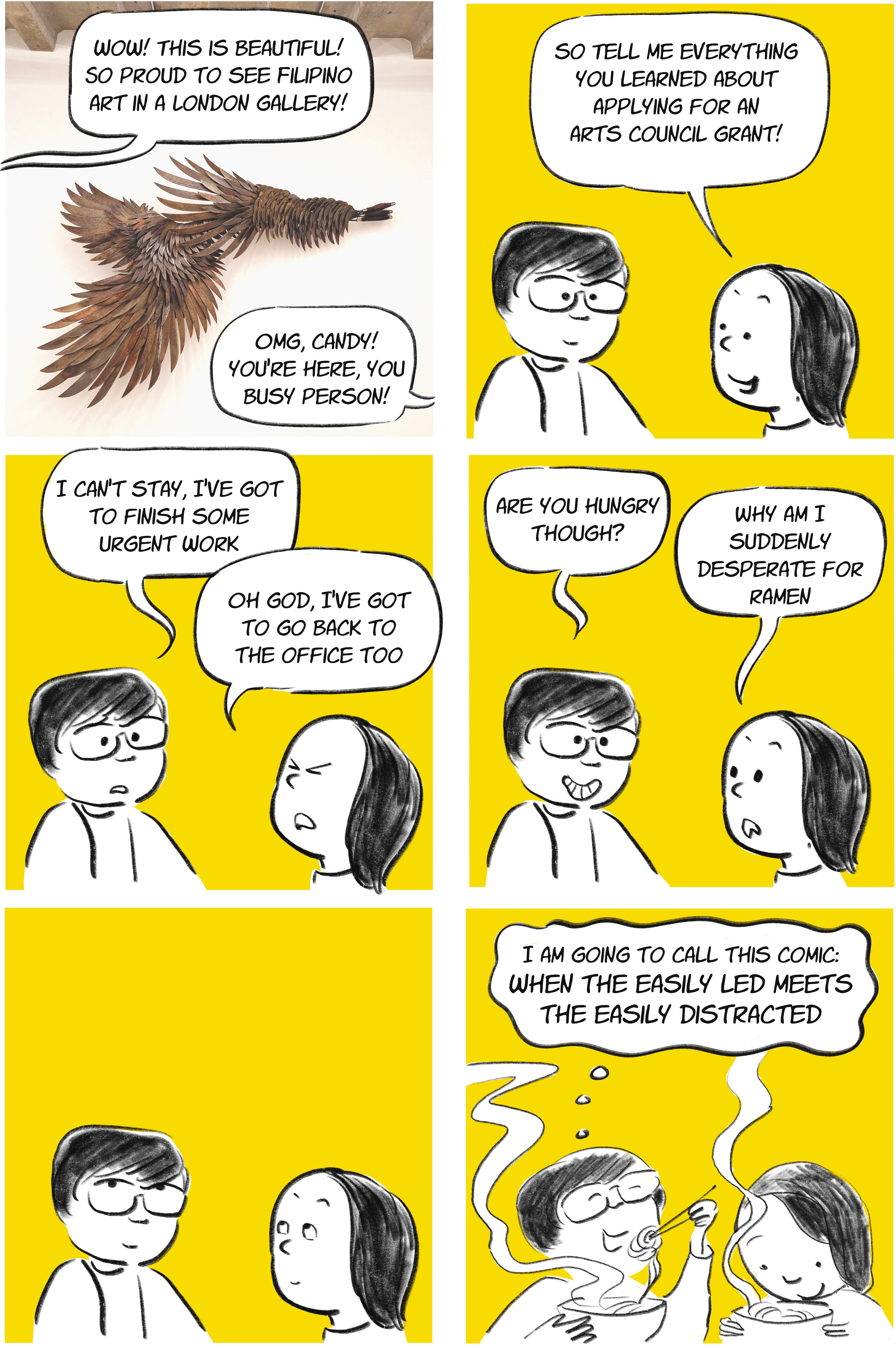 You can find the Boot Camp I do with Sara Grant and Mo O’Hara here. You can view Ellipsis by Isabel and Alfredo Aquilizan at the Ames Yavuz Gallery near Oxford Circus in London. And we ate at Shoryu Ramen, Regent Street.